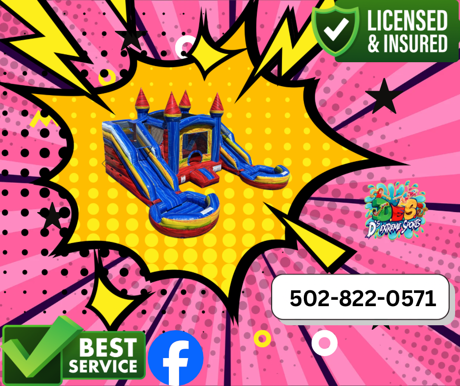 Are you looking for a Bounce Houses for your next party or celebration event! Look no further than D's Extreme Sports! We have the best selection of Bounce Houses around! Our selection of Bounce Houses inflatables is extensive with a variety of bright and vibrant colors that are neutral friendly for ( Boys and Girls ) Best of all, All Bounce Houses are cleaned and sanitized after each rental, so you can be sure that your kids will always have a safe and fun experience with us. Our Bounce Houses really stand out and are the main attraction at party events such as birthday parties, school events, church festivals, and backyard events. Our #1 goal is safety for all our clients and we take great pride in offering high-grade selection of bounce houses for your celebrations or events. Whether you're renting an Obstacle Course , Dunk Tank Rentals , Extreme Sports Rentals ,Generator Rentals ,Tables & Chair Rentals, Water Slide Rentals We bring the fun to your doorstep! We provide delivery, set-up and pick-up to Meade County with quality inflatable rentals with excellent customer service! To make a reservation simply order online 24/7 from our website or call are office at 502-822-0571. We can be reached by email at dsextremesports@gmail.com or our Contact Ds Extreme Sports Inc. Follow us on Facebook as we update new inventory frequently!