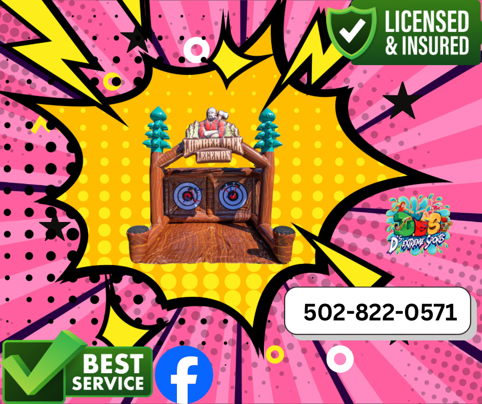 Are you looking for a Game Rentals for your next party or celebration event! Look no further than D's Extreme Sports! We have the best selection of Game Rentals around! Our selection of Game Rentals inflatables is extensive with a variety of bright and vibrant colors that are neutral friendly for ( Boys and Girls ) Best of all, All Game Rentals are cleaned and sanitized after each rental, so you can be sure that your kids will always have a safe and fun experience with us. Our Game Rentals really stand out and are the main attraction at party events such as birthday parties, school events , church festivals, and backyard events. Our #1 goal is safety for all our clients and we take great pride in offering high-grade selection of bounce houses for your celebrations or events. Whether you're renting an Obstacle Course , Dunk Tank Rentals , Extreme Sports Rentals ,Generator Rentals ,Tables & Chair Rentals, Water Slide Rentals We bring the fun to your doorstep! We provide delivery, set-up and pick-up to Hardin County with quality inflatable rentals with excellent customer service! To make a reservation simply order online 24/7 from our website or call are office at 502-822-0571. We can be reached by email at dsextremesports@gmail.com or our Contact Ds Extreme Sports Inc. Follow us on Facebook as we update new inventory frequently!